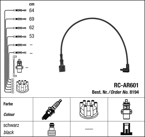- Zapalovací kabely NGK Alfa Romeo 145 1.6 Twin Spark (03.96-10.01) RC-AR601 8194 (sada)