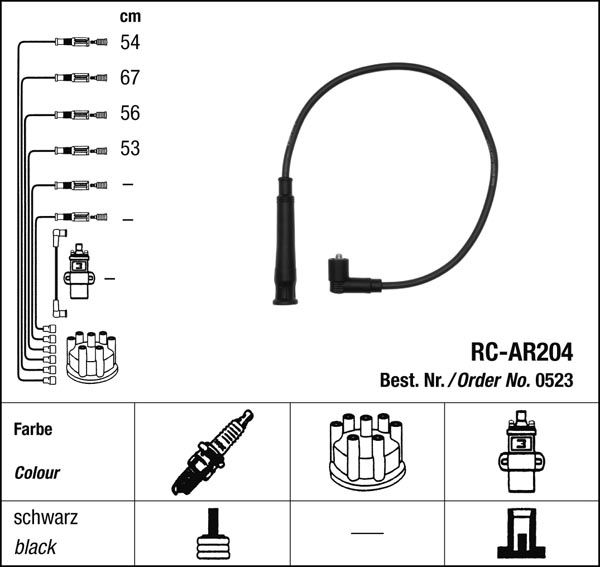 Zapalovací kabely NGK Alfa Romeo 145 1.7 (07.94-09.96) RC-AR204 523 (sada)