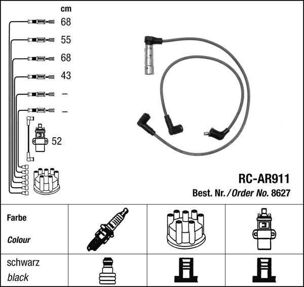 Zapalovací kabely NGK Alfa Romeo 33 1.7 (07.90-12.95) RC-AR911 8627 (sada)