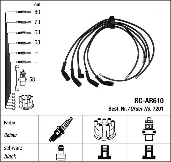 Zapalovací kabely NGK Alfa Romeo 75 1.6 (05.85-04.89) RC-AR610 7201 (sada)