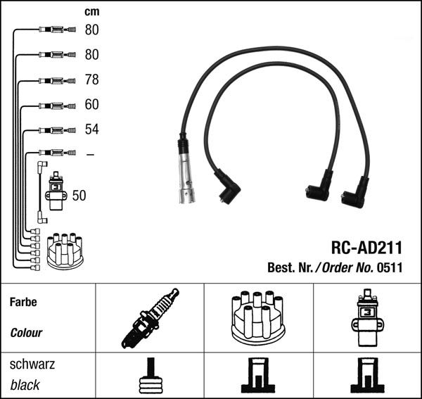 - Zapalovací kabely NGK Audi 200 2.2 (01.88-12.90) RC-AD211 511 (sada)