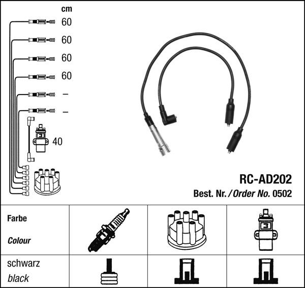 - Zapalovací kabely NGK Audi 80 1.8 Quattro (09.86-07.89) RC-AD202 502 (sada)