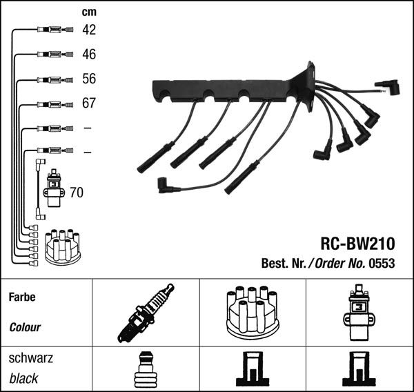 Zapalovací kabely NGK BMW 3 serie 316i 1.6 (05.87-10.94) RC-BW210 553 (sada)