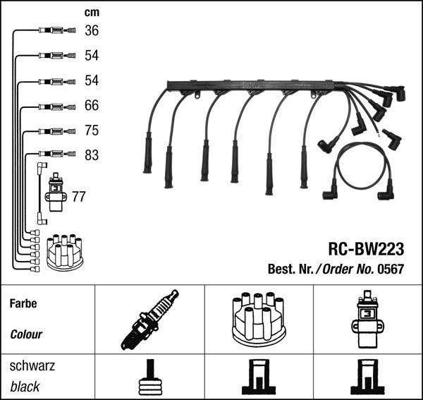 - Zapalovací kabely NGK BMW 6 serie 635i 3.4 (01.85-10.89) RC-BW223 567 (sada)