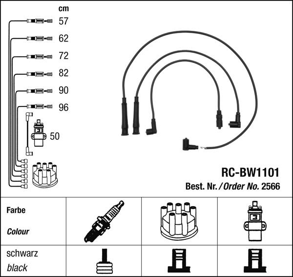 Prvotřídní kvalita NGK v provedení měděného zapalovacího kabelu s odrušovacími rezistory, kabelu s uhlíkovými rezistory nebo zapalovacího kabelu s indukčními rezistory.