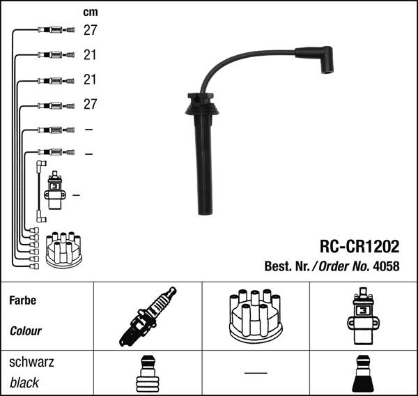 Prvotřídní kvalita NGK v provedení měděného zapalovacího kabelu s odrušovacími rezistory, kabelu s uhlíkovými rezistory nebo zapalovacího kabelu s indukčními rezistory.