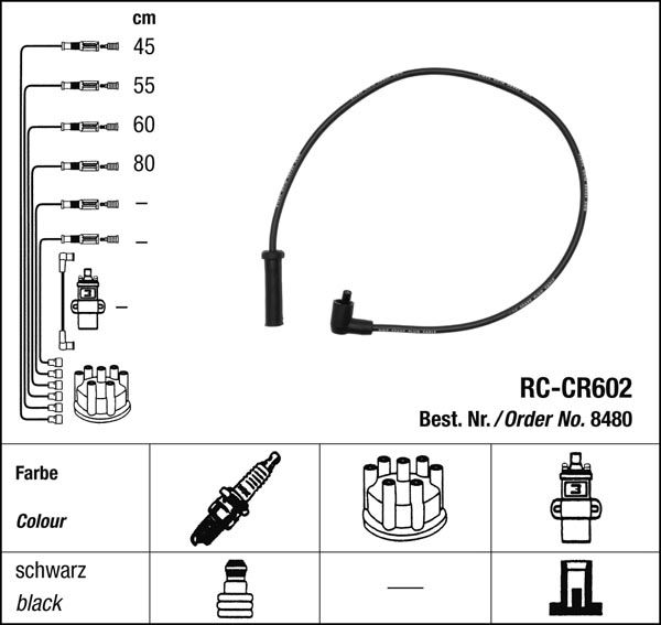Prvotřídní kvalita NGK v provedení měděného zapalovacího kabelu s odrušovacími rezistory, kabelu s uhlíkovými rezistory nebo zapalovacího kabelu s indukčními rezistory.