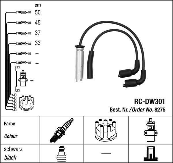 Zapalovací kabely NGK Daewoo Lanos 1.3 (04.97-06.99) RC-DW301 8275 (sada)