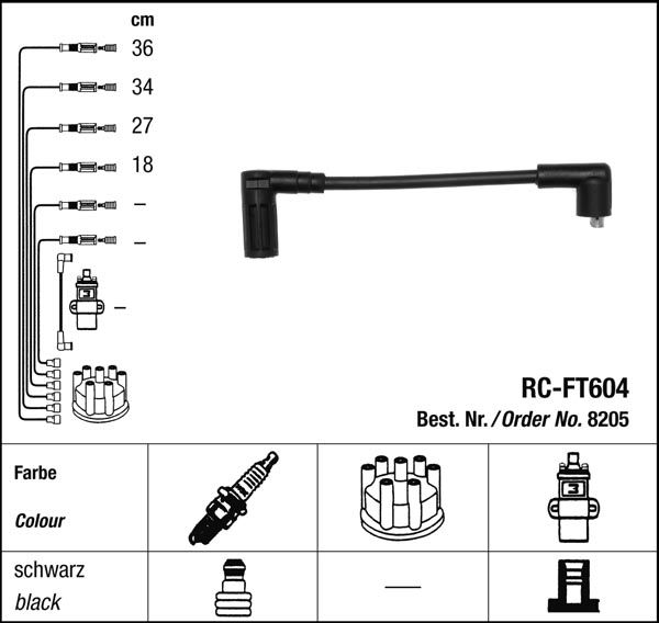 Zapalovací kabely NGK Fiat Cinquecento 0.9 (10.94-02.98) RC-FT604 8205 (sada)