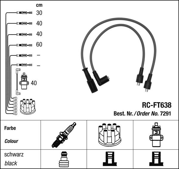 Zapalovací kabely NGK Fiat Elba CSL 1.3 (04.91-10.93) RC-FT638 7291 (sada)