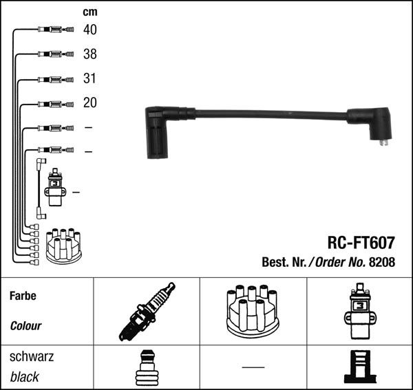 - Zapalovací kabely NGK Fiat Panda 0.9 (05.91-08.98) RC-FT607 8208 (sada)