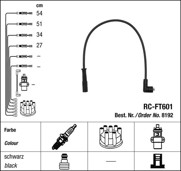 Zapalovací kabely NGK Fiat Panda 1.1 (04.95-12.99) RC-FT601 8192 (sada)