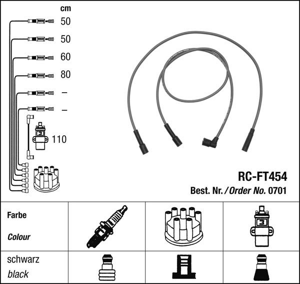 Zapalovací kabely NGK Fiat Panda 1.1 (05.91-12.92) RC-FT454 701 (sada)