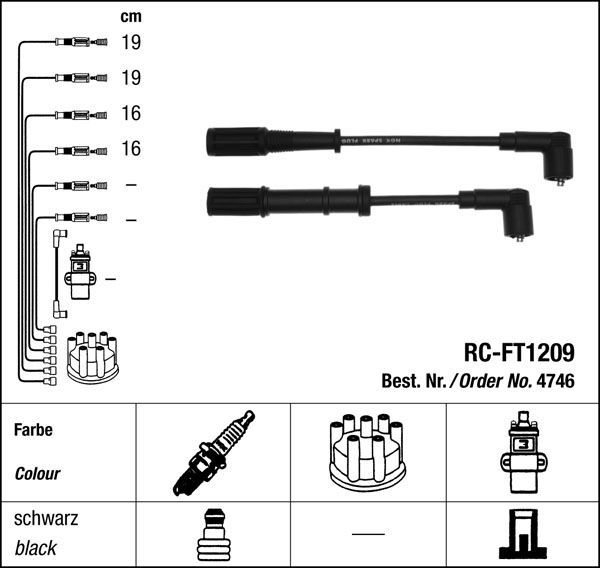 - Zapalovací kabely NGK Fiat Punto Grande (Typ199) 1.2 (09.10-) RC-FT1209 4746 (sada)
