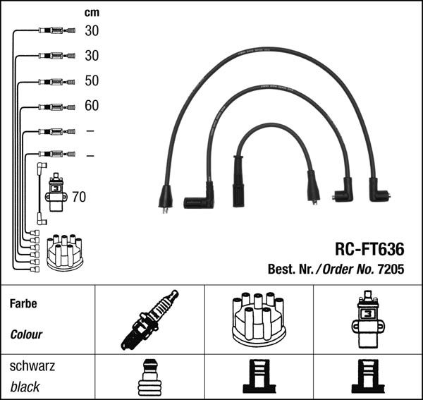 - Zapalovací kabely NGK Fiat Ritmo 1.1 (04.85-12.87) RC-FT636 7205 (sada)