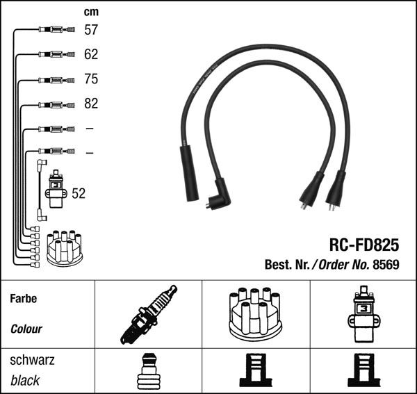 Zapalovací kabely NGK Ford Consul 2.0 (02.72-08.75) RC-FD825 8569 (sada)