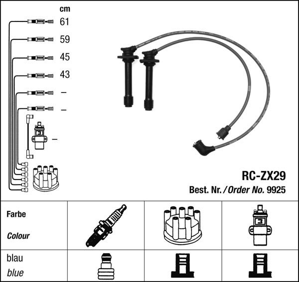 Prvotřídní kvalita NGK v provedení měděného zapalovacího kabelu s odrušovacími rezistory, kabelu s uhlíkovými rezistory nebo zapalovacího kabelu s indukčními rezistory.