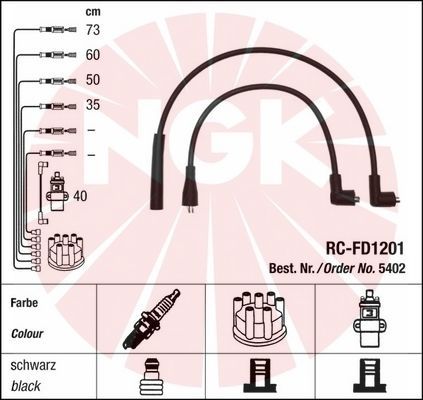 - Zapalovací kabely NGK Ford Probe 2.2 Turbo GT (02.88-05.92) RC-FD1201 5402 (sada)