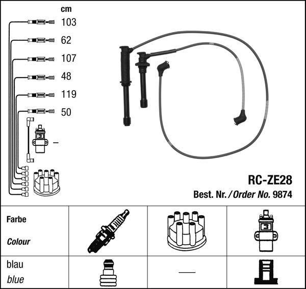 - Zapalovací kabely NGK Ford Probe 2.5 GT (06.92-12.97) RC-ZE28 9874 (sada)