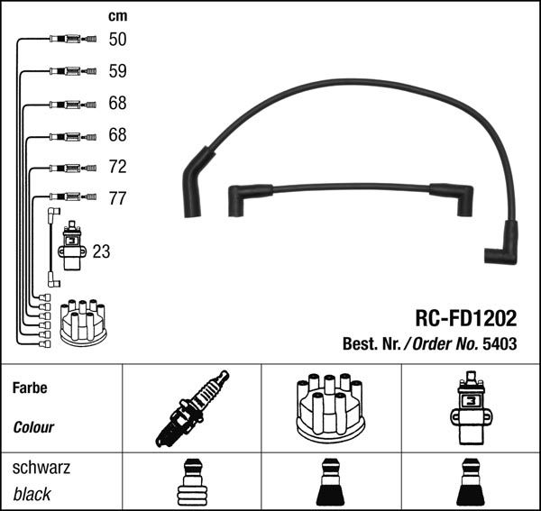- Zapalovací kabely NGK Ford Probe 3.0 (06.89-05.92) RC-FD1202 5403 (sada)