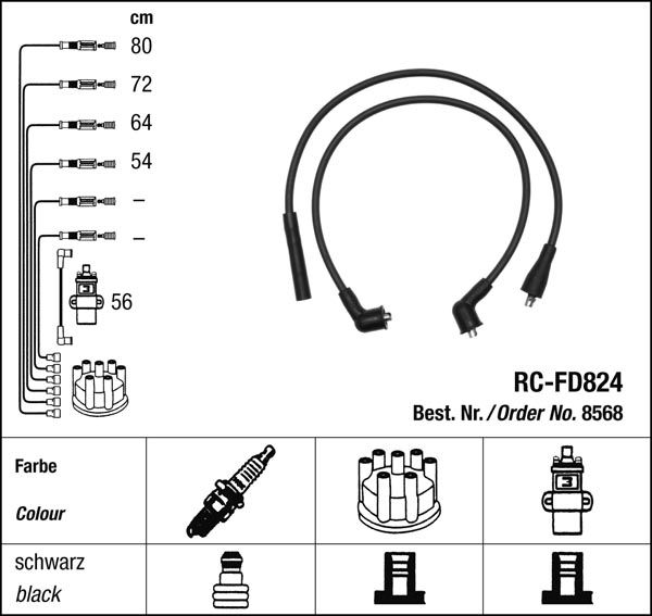 - Zapalovací kabely NGK Ford Transit 2.0 (10.85-03.91) RC-FD824 8568 (sada)