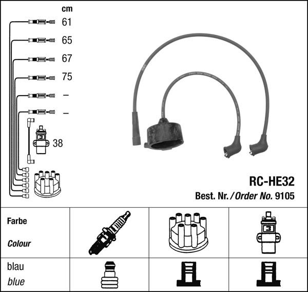 Prvotřídní kvalita NGK v provedení měděného zapalovacího kabelu s odrušovacími rezistory, kabelu s uhlíkovými rezistory nebo zapalovacího kabelu s indukčními rezistory.