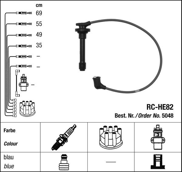 Prvotřídní kvalita NGK v provedení měděného zapalovacího kabelu s odrušovacími rezistory, kabelu s uhlíkovými rezistory nebo zapalovacího kabelu s indukčními rezistory.
