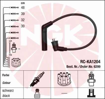 Prvotřídní kvalita NGK v provedení měděného zapalovacího kabelu s odrušovacími rezistory, kabelu s uhlíkovými rezistory nebo zapalovacího kabelu s indukčními rezistory.