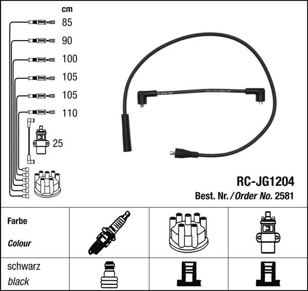 - Zapalovací kabely NGK Jaguar XJ6 2.9 (10.87-09.88) RC-JG1204 2581 (sada)