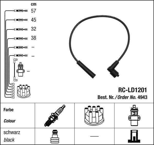 Prvotřídní kvalita NGK v provedení měděného zapalovacího kabelu s odrušovacími rezistory, kabelu s uhlíkovými rezistory nebo zapalovacího kabelu s indukčními rezistory.