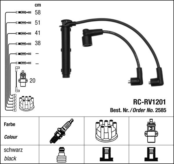 Prvotřídní kvalita NGK v provedení měděného zapalovacího kabelu s odrušovacími rezistory, kabelu s uhlíkovými rezistory nebo zapalovacího kabelu s indukčními rezistory.