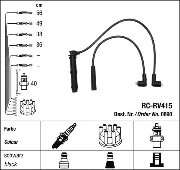 - Zapalovací kabely NGK Lotus Elise 1.8 (08.95-08.00) RC-RV415 890 (sada)