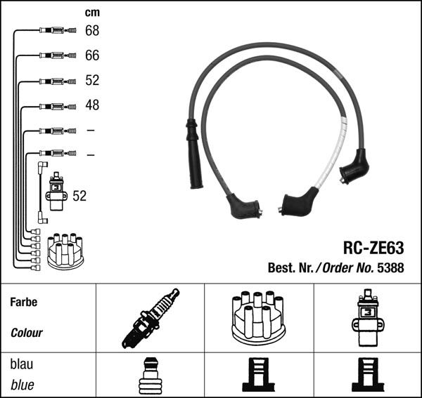 Prvotřídní kvalita NGK v provedení měděného zapalovacího kabelu s odrušovacími rezistory, kabelu s uhlíkovými rezistory nebo zapalovacího kabelu s indukčními rezistory.