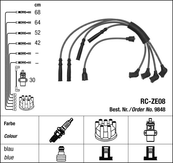 Prvotřídní kvalita NGK v provedení měděného zapalovacího kabelu s odrušovacími rezistory, kabelu s uhlíkovými rezistory nebo zapalovacího kabelu s indukčními rezistory.