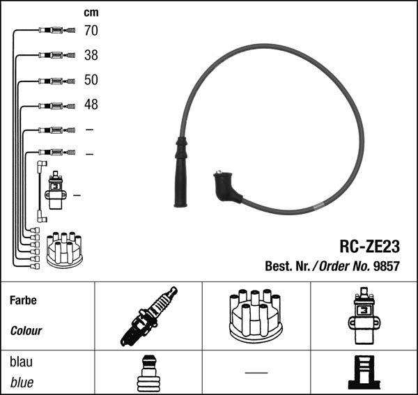 Prvotřídní kvalita NGK v provedení měděného zapalovacího kabelu s odrušovacími rezistory, kabelu s uhlíkovými rezistory nebo zapalovacího kabelu s indukčními rezistory.