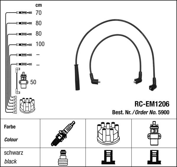 Prvotřídní kvalita NGK v provedení měděného zapalovacího kabelu s odrušovacími rezistory, kabelu s uhlíkovými rezistory nebo zapalovacího kabelu s indukčními rezistory.