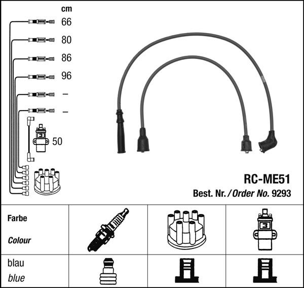 Zapalovací kabely NGK Mitsubishi Galant 1.8 (01.88-10.92) RC-ME51 9293 (sada)