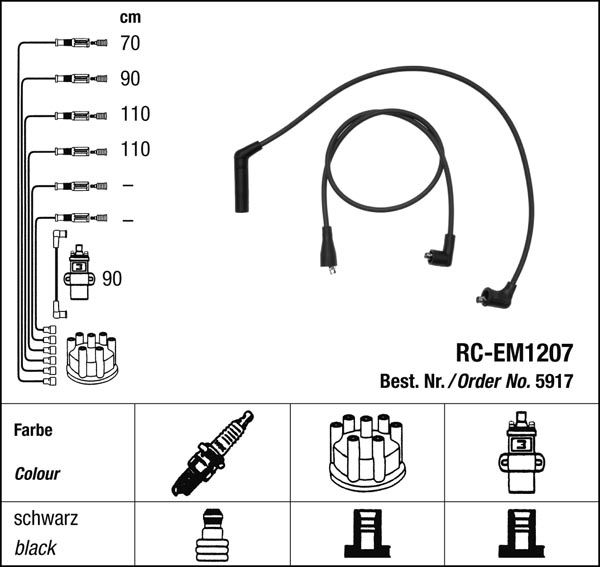 Prvotřídní kvalita NGK v provedení měděného zapalovacího kabelu s odrušovacími rezistory, kabelu s uhlíkovými rezistory nebo zapalovacího kabelu s indukčními rezistory.