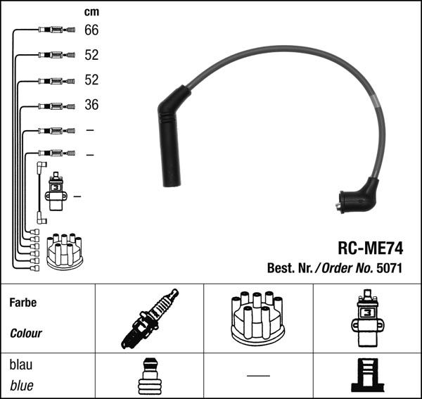 Prvotřídní kvalita NGK v provedení měděného zapalovacího kabelu s odrušovacími rezistory, kabelu s uhlíkovými rezistory nebo zapalovacího kabelu s indukčními rezistory.