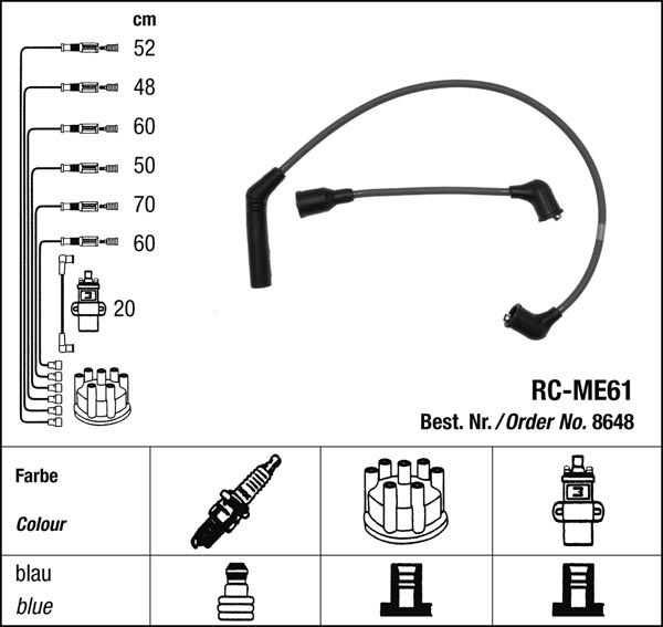 Prvotřídní kvalita NGK v provedení měděného zapalovacího kabelu s odrušovacími rezistory, kabelu s uhlíkovými rezistory nebo zapalovacího kabelu s indukčními rezistory.