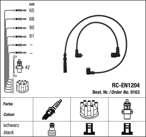 Prvotřídní kvalita NGK v provedení měděného zapalovacího kabelu s odrušovacími rezistory, kabelu s uhlíkovými rezistory nebo zapalovacího kabelu s indukčními rezistory.