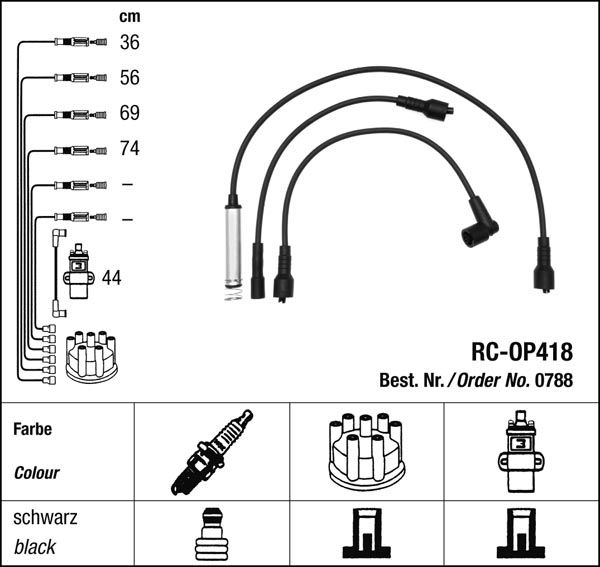 Zapalovací kabely NGK Opel Astra 2.0 GT (04.92-08.93) RC-OP418 788 (sada)