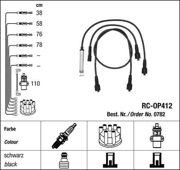 Prvotřídní kvalita NGK v provedení měděného zapalovacího kabelu s odrušovacími rezistory, kabelu s uhlíkovými rezistory nebo zapalovacího kabelu s indukčními rezistory.