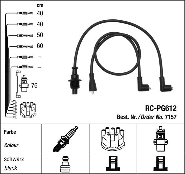 - Zapalovací kabely NGK Peugeot 305 1.5 (03.86-08.89) RC-PG612 7157 (sada)