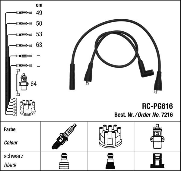 Zapalovací kabely NGK Peugeot 309 1.1 (10.85-10.91) RC-PG616 7216 (sada)