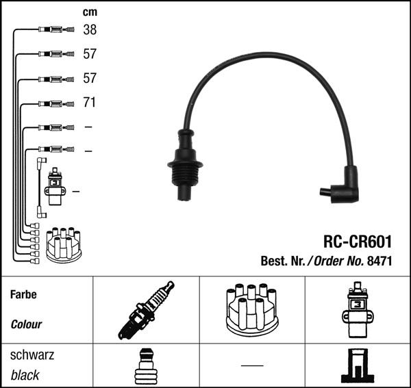 Prvotřídní kvalita NGK v provedení měděného zapalovacího kabelu s odrušovacími rezistory, kabelu s uhlíkovými rezistory nebo zapalovacího kabelu s indukčními rezistory.