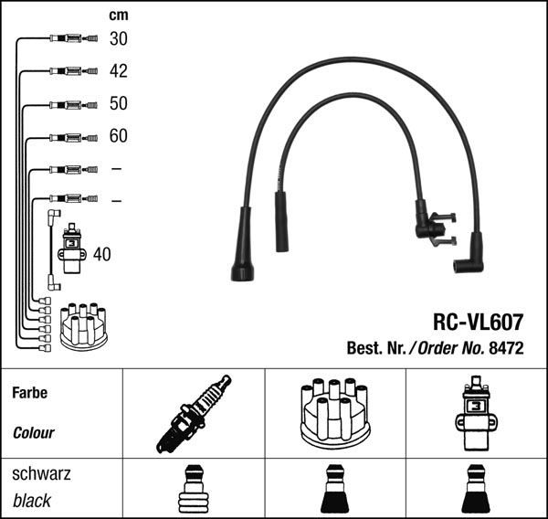 - Zapalovací kabely NGK Renault 19 1.7 (02.91-04.92) RC-VL607 8472 (sada)