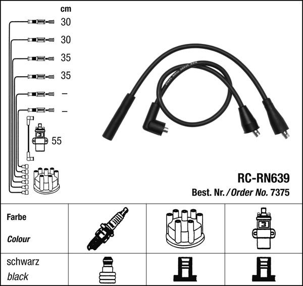 Prvotřídní kvalita NGK v provedení měděného zapalovacího kabelu s odrušovacími rezistory, kabelu s uhlíkovými rezistory nebo zapalovacího kabelu s indukčními rezistory.