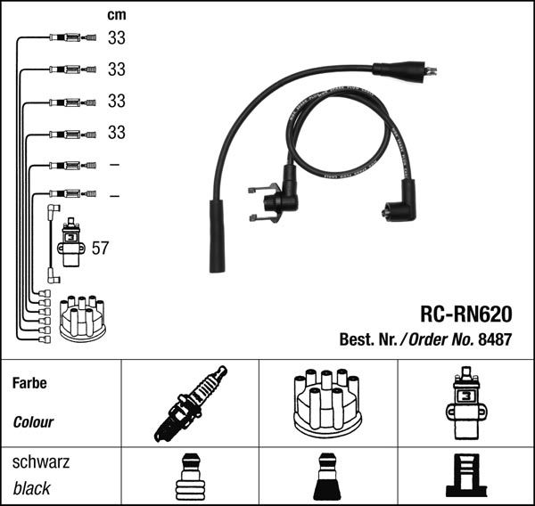 Prvotřídní kvalita NGK v provedení měděného zapalovacího kabelu s odrušovacími rezistory, kabelu s uhlíkovými rezistory nebo zapalovacího kabelu s indukčními rezistory.