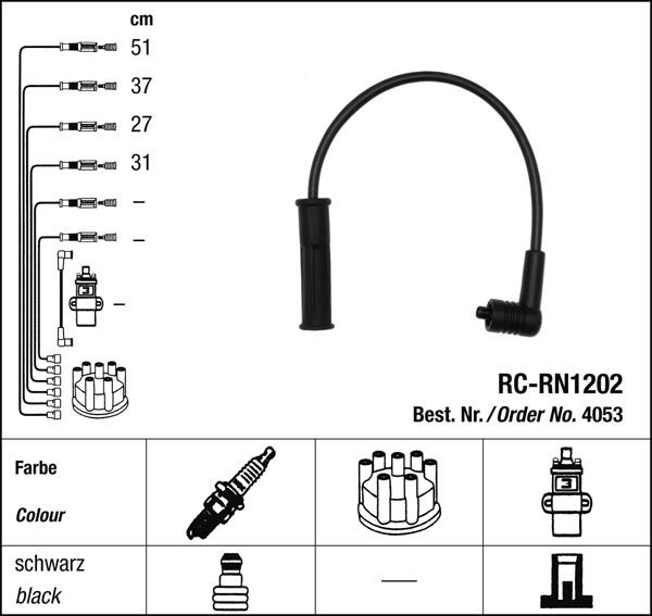 - Zapalovací kabely NGK Renault Logan 1.6 X90 (08.04-) RC-RN1202 4053 (sada)